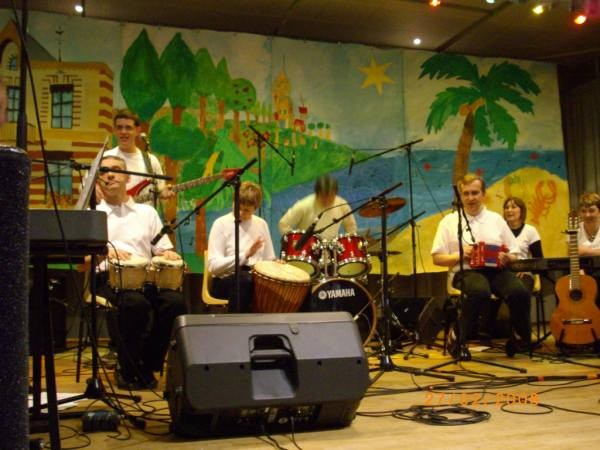 Les musiciens : Antoine : basse, Christophe : guitare-vibratone-accordéon, Corinne : clavier, Gaëlle : percussion, Jean-Michel : bongos, Mylène : guitare électrique, Nathalie : chant, Rémy : batterie, Sylvaine : djembé, Vincent : chant.
